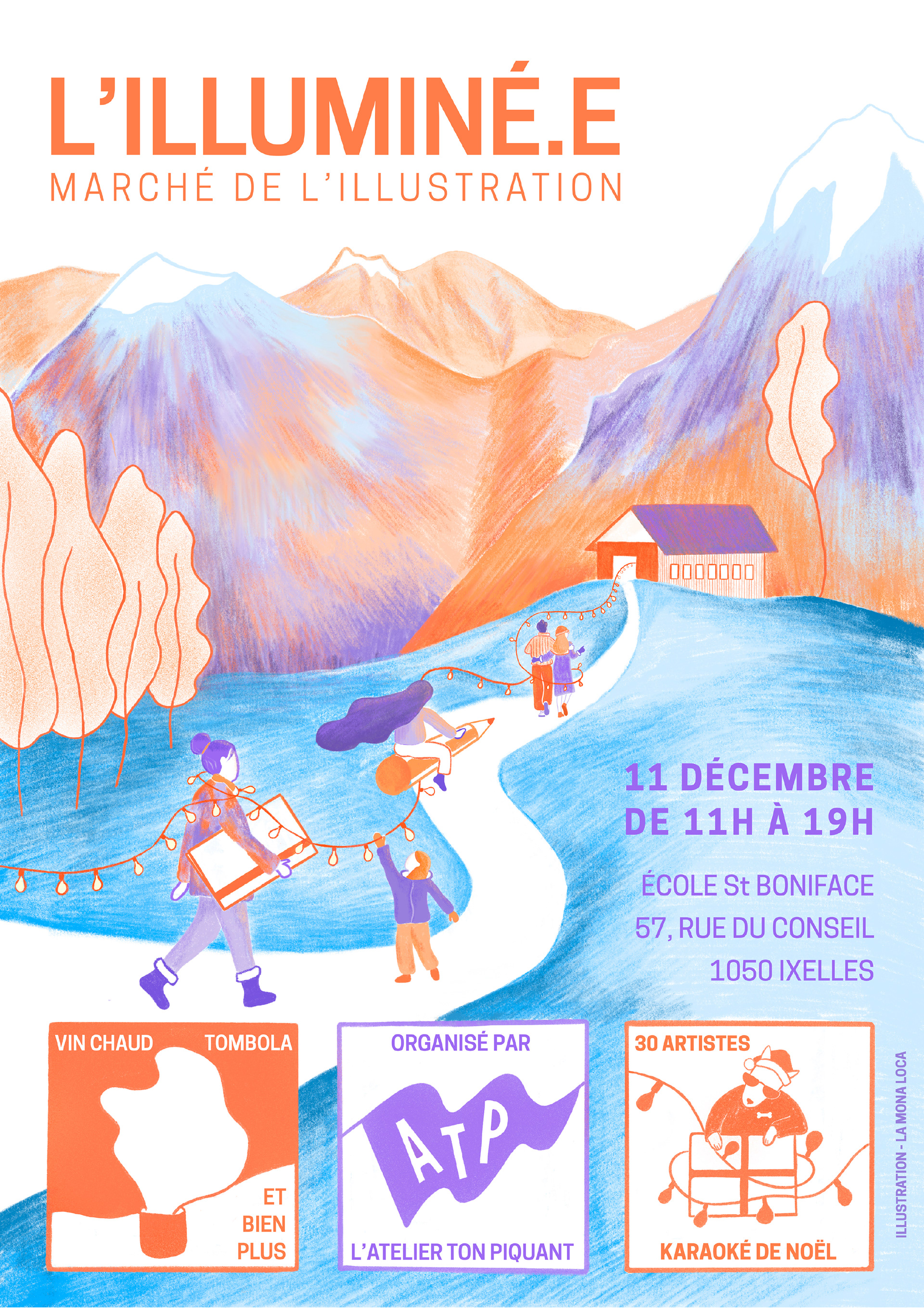 Affiche réalisée en numérique pour le marché de l'illustration de Noël du collectif Ton Piquant fin 2022 à Bruxelles.