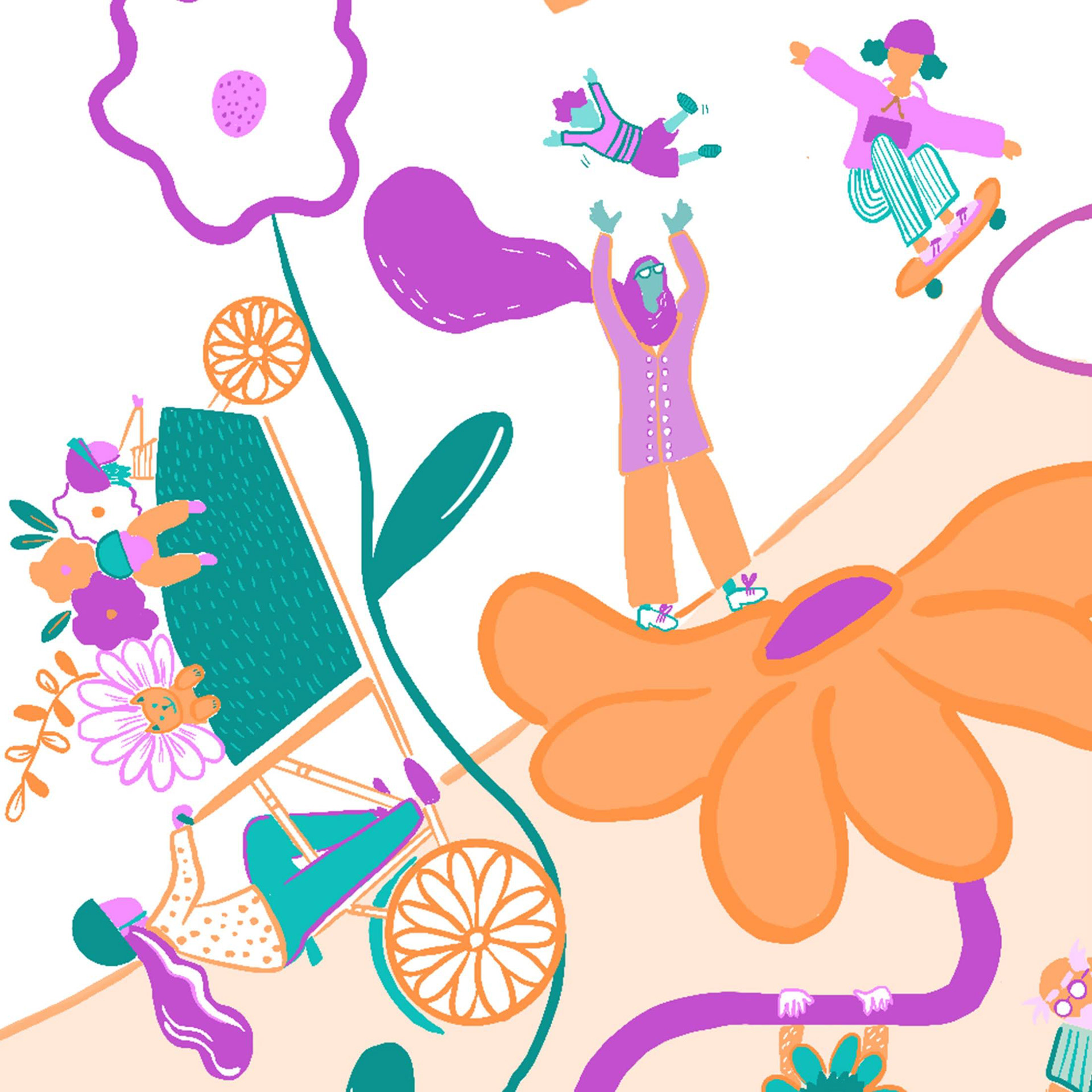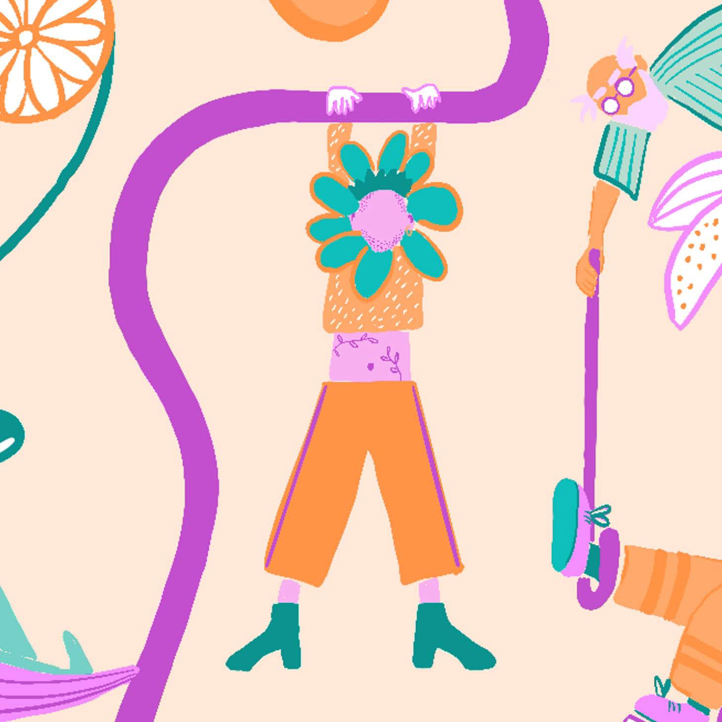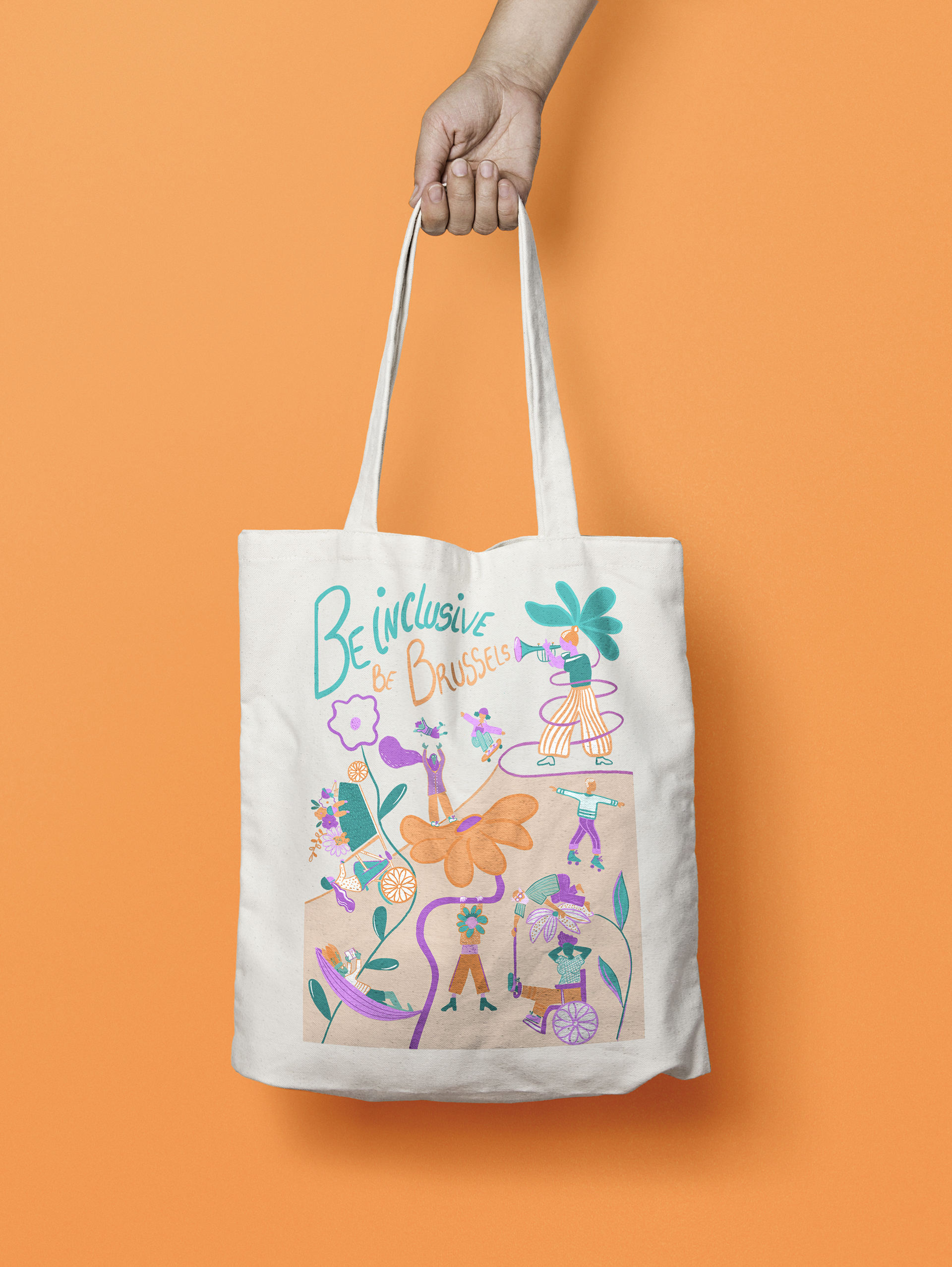 Illustration destinée à l’impression d’un tote bag pour distribuer lors de la fête de l’Iris en mai 2023 pour la plateforme Equal.Brussels.